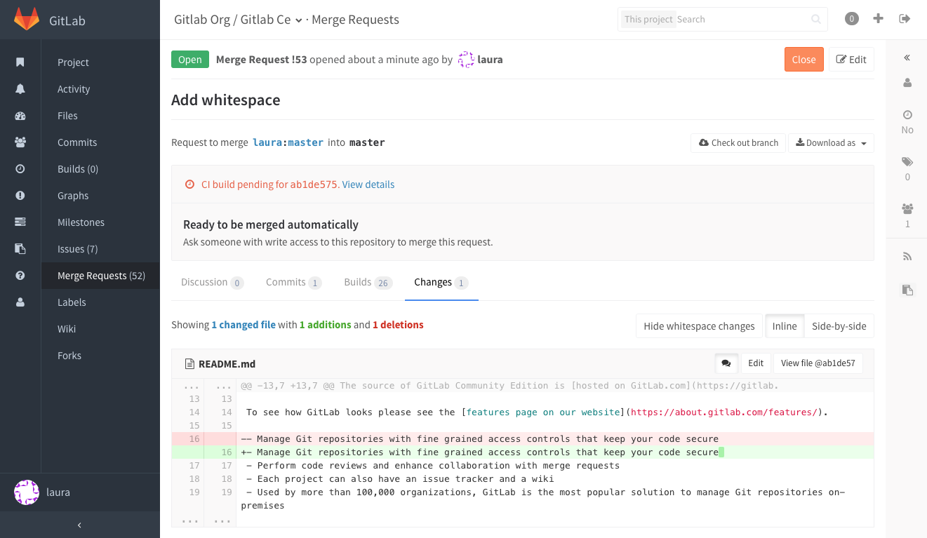 Merge requests allow you to exchange changes you made to source code
